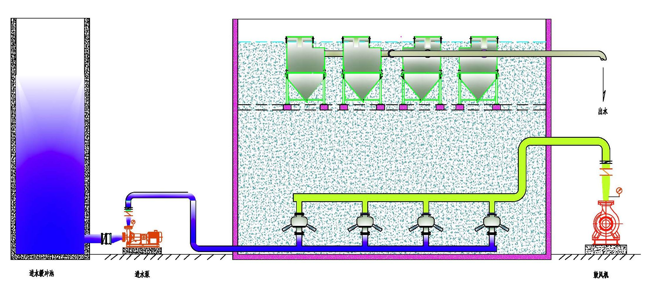 百克公司經與合作伙伴經過2年的研發(fā),將SHARON 和ANAMMOX有機整合到一個反應器中,即BIC-ANAMMOX反應器,該反應器下部由進水布水器和射流混合曝氣器組成,中部為反應區(qū),上部位固液分離模塊,該反應器獲國家發(fā)明專利:ZL 2014 1 0416646.8