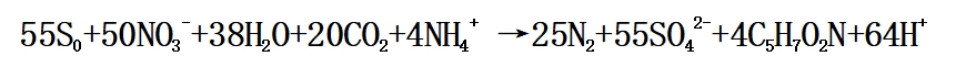 硫自養(yǎng)反硝化是指在缺氧或厭氧條件下,某些光能營養(yǎng)型、無機化能營養(yǎng)型的硫氧化細菌,可利用還原態(tài)硫(S2-,S0,SO32-,S4O62-,S2O32-等)作為電子供體,以NO3--N為電子受體,同時通過氧化還原態(tài)硫獲取能量,將NO3--N還原為氮氣的過程。